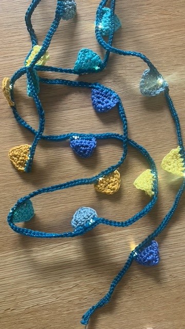 With the hot weather, the fruits of my labours at the allotment have arrived early this year, and when I haven’t been harvesting I’ve been watering! I took some time out to enjoy The Magpies Festival earlier in the month, which inspired a bunting take on fairy lights.